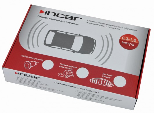 Парктроник Incar PT-1043 значительно помогает при парковке и снижает риск повреждения автомобиля при движении задним ходом. Видео парктроник оснащен 4 сенсорными датчиками диаметром 18,5 мм. Они имеют глянцевую черую окраску. При желании вы сможете легко перекрасить их в любой цвет кузова. Датчики парковки очень чувствительны: определяют расстояние до опасного объекта от 30 см до 1,8 метров.
