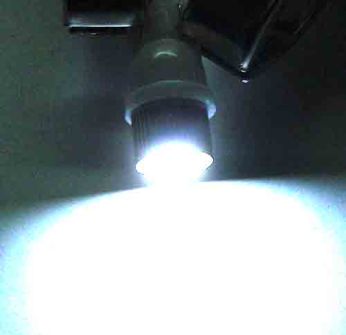 Сверхъяркая светодиодная лампа 194 на базе светодиода Barracuda с 6-ю кристаллами обеспечивают широкий угол свечения в 120 градусов. Металлический радиатор используется для охлаждения лампы. Цвет свечения - холодный белый.