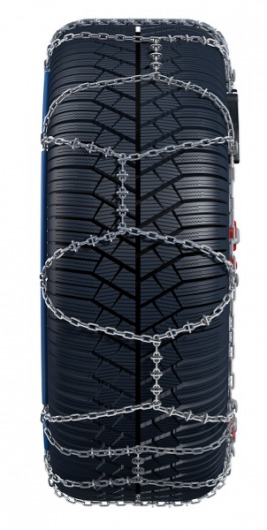 • Размер звена — 10 мм. Цепь на шины имеет ассиметричный ромбовидный рисунок. Она дополнена усилителями дробления льда (небольшими пластинками на звеньях). Благодаря этому дробление льда и снега становится более эффективным, а значит, улучшается сцепление с дорогой.