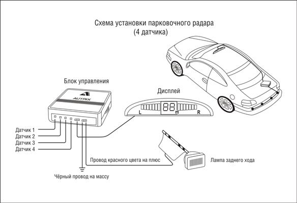 Схема установки парковочного радара AUTRIX F-716