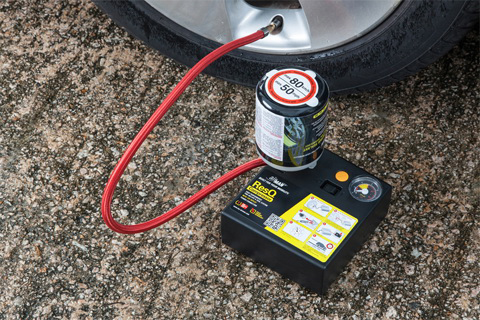 Пользоваться этим поршневым мини-компрессором довольно просто. Достаточно прикрепить герметик-шланг к золотниковому клапану шины, вставить шланг в емкость с герметиком и подключить компрессор к прикуривателю. Остальное сделает компрессор. В большинстве случаев он справляется с проколом всего за 10 минут.