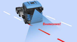 • Система контроля полосы движения просигнализирует, если во время движения вы случайно потеряете управление. Это особенно актуально для тех, кто занимается грузоперевозками на дальние расстояния, когда усталость сказывается на вождении.