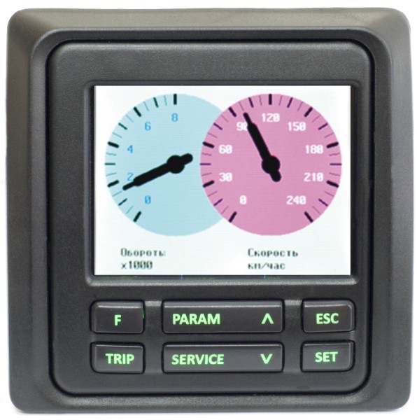 Вся информация выводится на цветной TFT дисплей с диагональю 2,4 дюйма (разрешение 320х240) и неограниченным количеством вариантов цветового оформления, которое вы можете настраивать по своему вкусу. Если времени и желания на такие настройки нет, то можно воспользоваться любой из 4-х предустановленных цветовых схем, которые легко переключаются между собой.