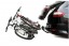 Багажник для велосипедов легко устанавливается на болты съемного крюка прицепного устройства. Велосипедный багажник изготовлен из стальных усиленных труб, что обеспечивает более высокую прочность, в том числе при езде по бездорожью. Автокрепление поддерживает колеса увеличенного размера.