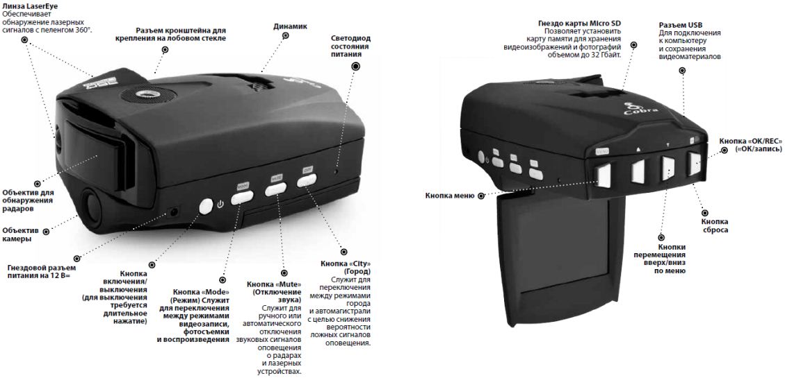 Новинка 2014 года!Радар-детектор с видеорегистратором Cobra VRD 3000CT не только подсказывает вам, где находятся радары ДПС, но и снимает все, что происходит на дороге. Тем самым вы получаете 2 устройства в 1! И автомобильный видеорегистратор со съемкой в Full HD качестве с разрешением 1920x1080, ЖК-монитором 2,4 дюйма, аксселерометром и датчиком движения, и радар-детектор, который прекрасно распознает все российские фиксаторы скорости, в том числе радары Стрелка, Робот и др.