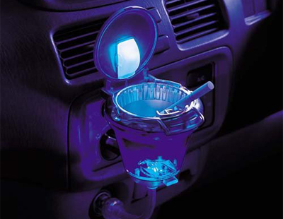 Пепельница с подсветкой FIZZ-783 - стильный вариант автомобильной пепельницы для Вашего автомобиля, которая не только украсит собой салон, но и сделает Ваше курение в автомобиле более комфортным и аккуратным. Крепится в гнездо прикуривателя, подсветка заряжается от него же. Подсветка имеет ровное приятное голубое свечение.