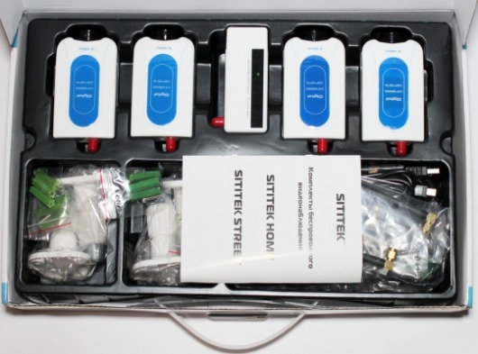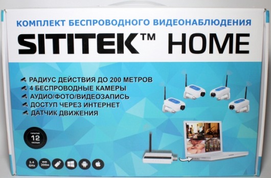 Видеокомплект Wi-Fi Sititek Home состоит из 4 беспроводных видеокамер с микрофонами и небольшого ресивера, который подключается к компьютеру через USB-порт. Система предназначена для контроля за домом и небольшим офисом: ведет фото- и видеозапись со звуком, поддерживает охранные функции и может управляться через Интернет (в том числе с устройств iPhone, Android).