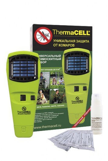 Уличный фумигатор ThermaCELL надежно защитит ваш отдых от комаров, мошек, мух и других летающих насекомых. Прибор воздействует на насекомых специальным веществом-репеллентом, губительным для комаров, мух и мошек, но гипоаллергенным и безопасным для людей и животных. При выпаривании в воздух репеллент всего за минуту создает защитное облако, освобождающее зону отдыха в 20 квадратных метров от кусачих насекомых.