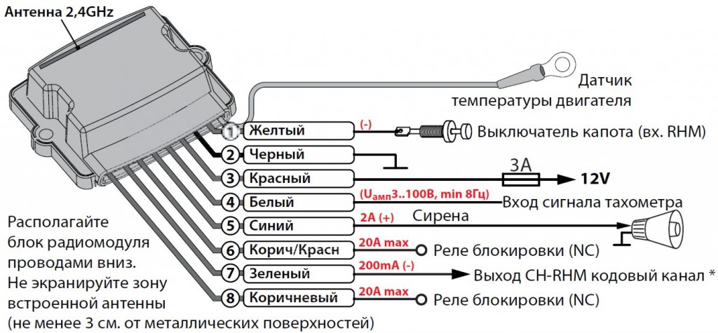 В современные машины устанавливается большое количество сложной электроники. Это, в свою очередь, требует наличия дополнительного оборудования высокого уровня, которое позволит произвести все работы без глубокого вмешательства в автомобиль. К тому же, сложность установки сигнализации во многом объясняется и уплотнением компоновки в моторной перегородке. С радиомодулем Pandora RHM-02 вы сможете подключить любые электрические цепи, не протягивая провода к основному блоку сигнализации. За коммуникацию между блоком и модулем отвечает радиоинтерфейс 2,4 ГГц.