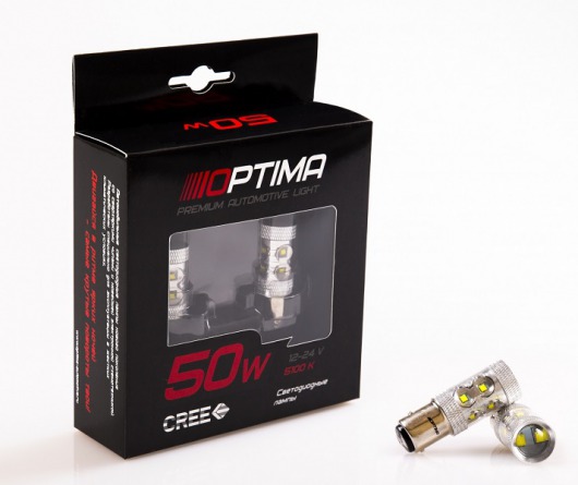 Светодиодная лампа Optima Premium P21/5W - 1157 (BaY15d) Cree 50W 12-24V 5100К – это габаритная лампа с увеличенной светоотдачей. Такие показатели достигаются благодаря использованию современных технологий CREE. Лампы Optima работают намного эффективнее, характеризуются более мощным световым потоком.