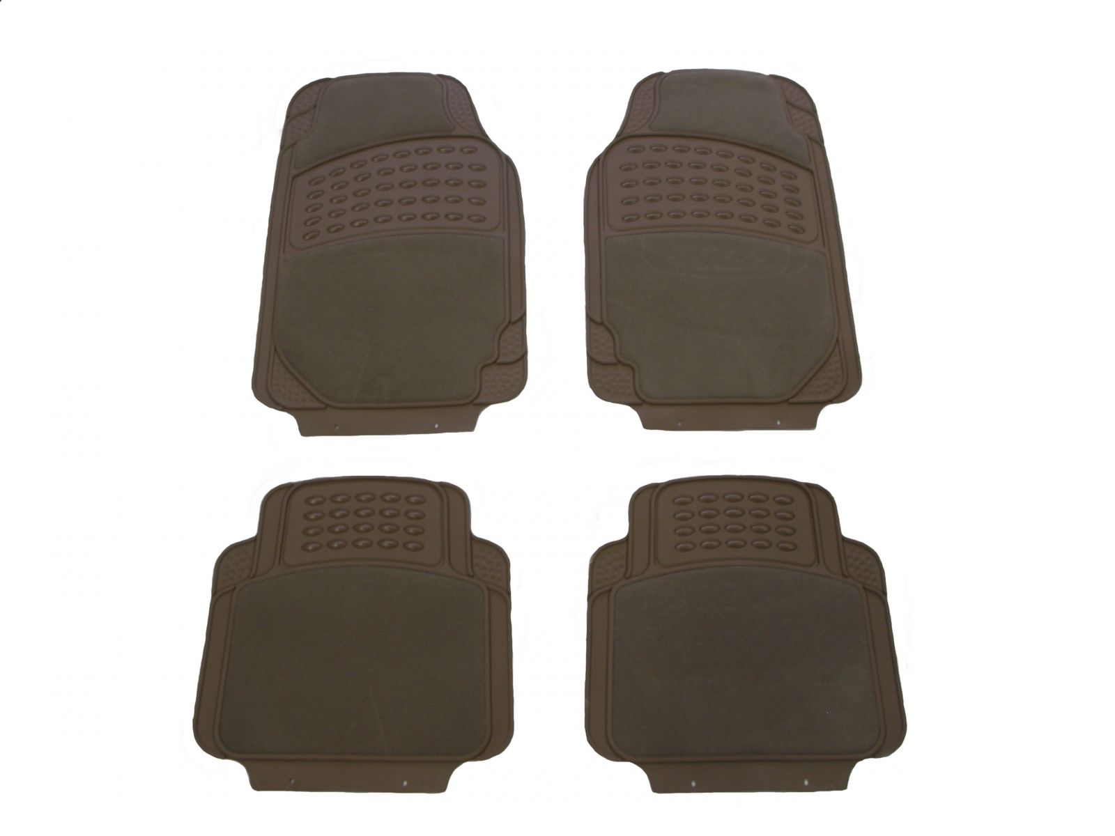 Комплект состоит из 4 частей: 2 передних и 2 задних коврика. Размеры: 71х45 и 44х46. 5 вариантов расцветки: бежевый, черный, серый, бордовый и синий. При заказе выберите нужный цвет в поле справа от цены.