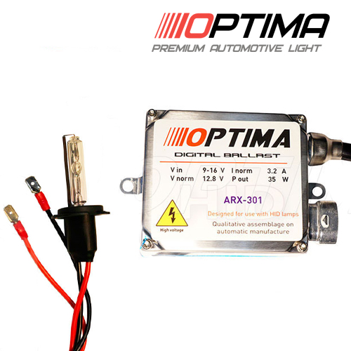 При монтаже не требует замены штатной проводки, поскольку полностью подготовлен к установке. Комплект биксенона Optima — революция на рынке автомобильного света. Биксенон отличается встроенными стабилизаторами, благодаря которым лампы не перегорают при резких перепадах напряжения и защищены от короткого замыкания.
