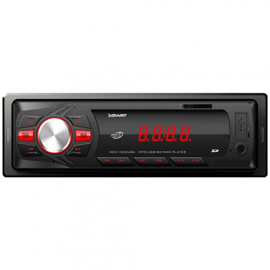 Автомобильная магнитола 1din Swat MEX-1001UBA – недорогое, но функциональное утройство. У MEX-1001UBA есть широкий набор мультимедийных технологий, которые позволяют выжать из устройства по максимуму. Ресивер способен выдавать звук на 2 колонки по 35 ватт. Есть возможность сохранения до 18 радиостанций на цифровом радио-тюнере. Кроме того, реализована возможность прослушивания аудиозаписей через карту памяти.