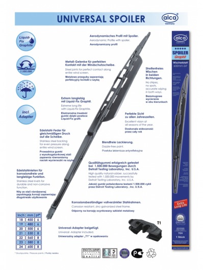 Чистящая резина стеклоочистителя изготовлена по специальной формуле. Благодаря этому дворник ALCA очистит стекло вашего автомобиля быстро, равномерно и бесшумно.