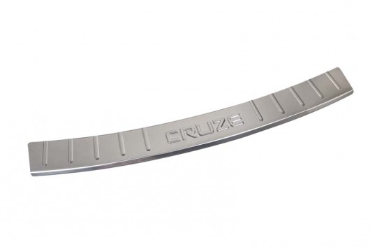 Декоративная накладка на задний бампер Chevrolet Cruze — это аксессуар автомобильного тюнинга, который защищает верхнюю часть заднего бампера от механических повреждений при загрузке или выгрузке вещей из багажника. Декоративные накладки на задний бампер предназначены для автомобилей Шевроле Круз 2011-2013 г.в.