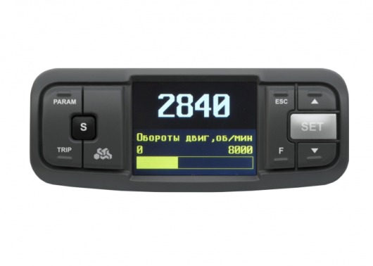 Вся информация выводится на цветной TFT дисплей с диагональю 2,4 дюйма (разрешение 320х240) и неограниченным количеством вариантов цветового оформления, которое вы можете настраивать по своему вкусу. Если времени и желания на такие настройки нет, то можно воспользоваться любой из 4-х предустановленных цветовых схем, которые легко переключаются между собой.