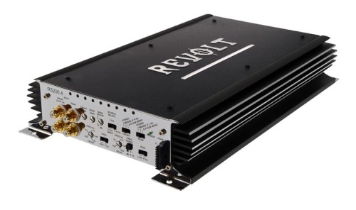 Усилитель Revolt RS200.4 имеет несколько вариантов подключения - суммирование левого и правого, мост или же обычный стереорежим. В этом усилителе применены зажимы отличного качества "силы" и выходов на акустику под защищенный провод. Помимо этого, усилитель и выглядит весьма экстравогантно - на верхней панели расположено название "Revolt" с эффектной синей подсветкой, которую оценят по достоинству любители ярких зрелищных инсталляций. Такая подсветка присутствует не только на лицевой части, а еще и по торцам корпуса в виде ярких точек.