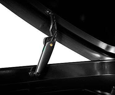 Автомобильный бокс Hapro имеет металлические профили в днище и комплекс рычагов двойного действия с пружинным механизмом. Функции рычагов: