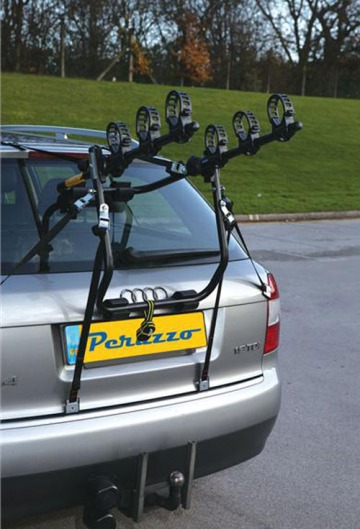 Велокрепление на заднюю дверь PERUZZO New Hi-Bikeуниверсальный багажник для перевозки 3-х велосипедов с закрытой рамой, который крепится при помощи ремней к задней двери автомобиля. Если же вам требуется перевезти велосипед с открытой рамой, то необходимо использовать адаптер PERUZZO PZ 395. Велосипеды фиксируются к автомобилю за раму при помощи специальных ремней безопасности.