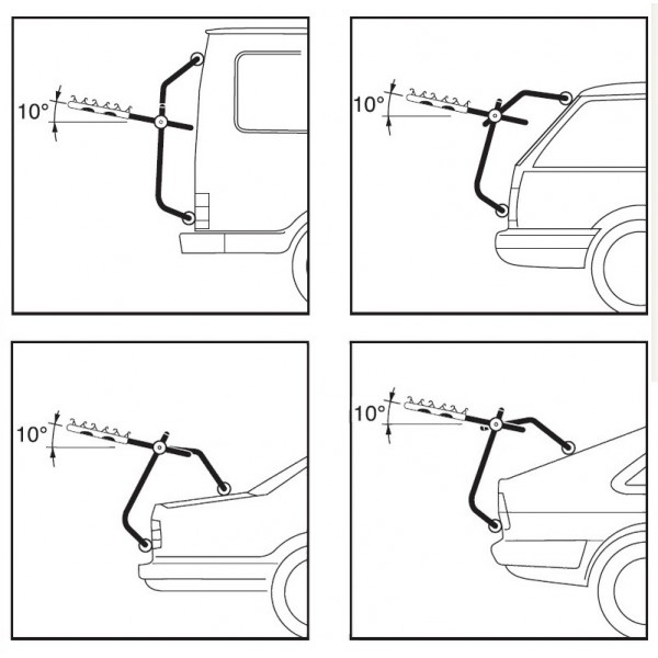 Также вам не требуется покупать дополнительный адаптер в случае перевозки велосипеда с V-образной "женской" рамой, ведь данный велобагажник подходит для транспортировки велосипедов с любым типом рамы.