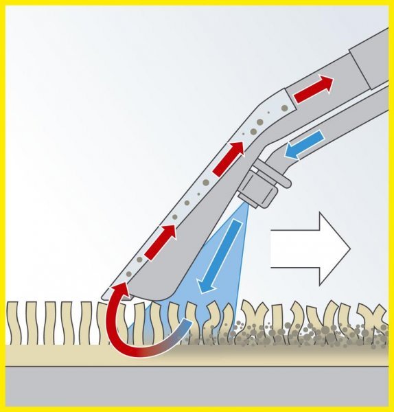 Принцип работы пылесоса не сложен: под давлением моющий раствор разбрызгивается по поверхности, а затем всасывается вместе с загрязнением. А если Вы чистите ковры, то параллельно распрямляется ворс. Приобретая Karcher SE 4001, Вы превращаете уборку в удовольствие!
