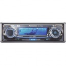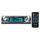 CD-ресивер Panasonic CQ-C7353W c голубой подсветкой дисплея и кнопок. Модель может управляться с пульта дистанционного управления и имеет регулировке яркости.